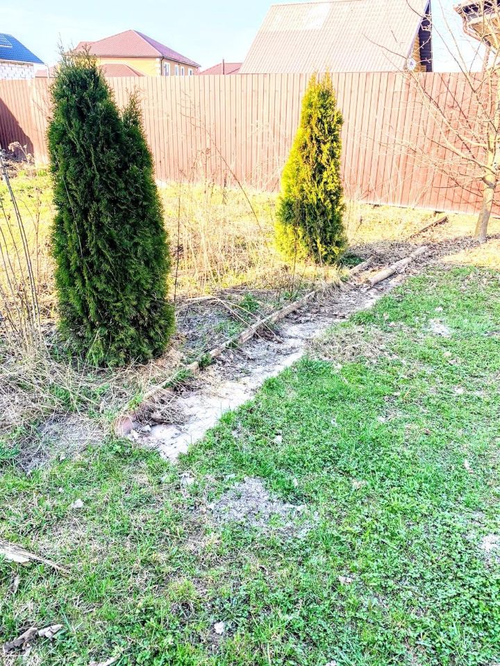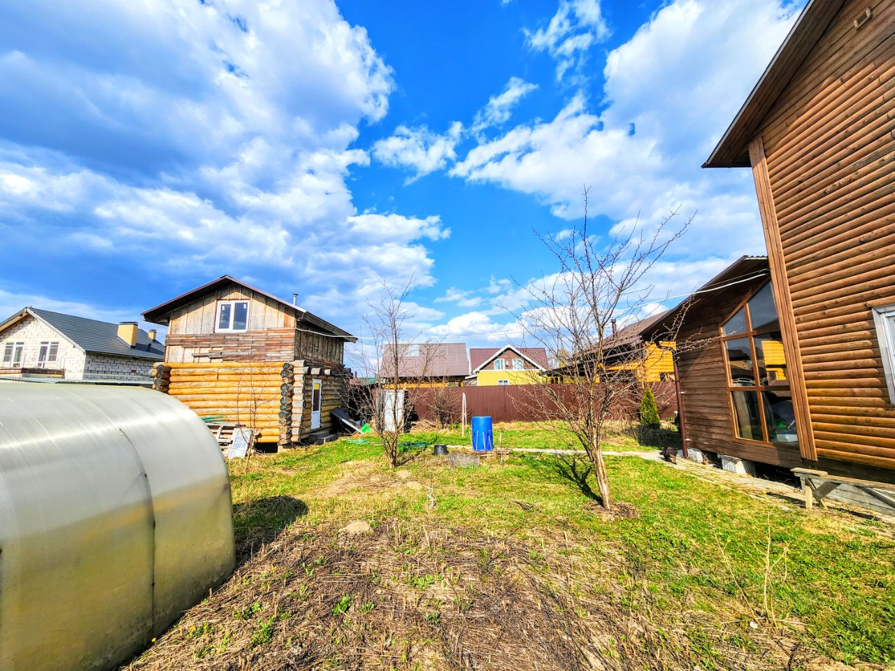 Участок: ровный, сухой, правильной формы, огорожен забором, на участке: баня, теплица, плодовые деревья и кустарники.