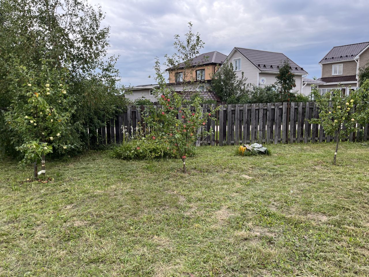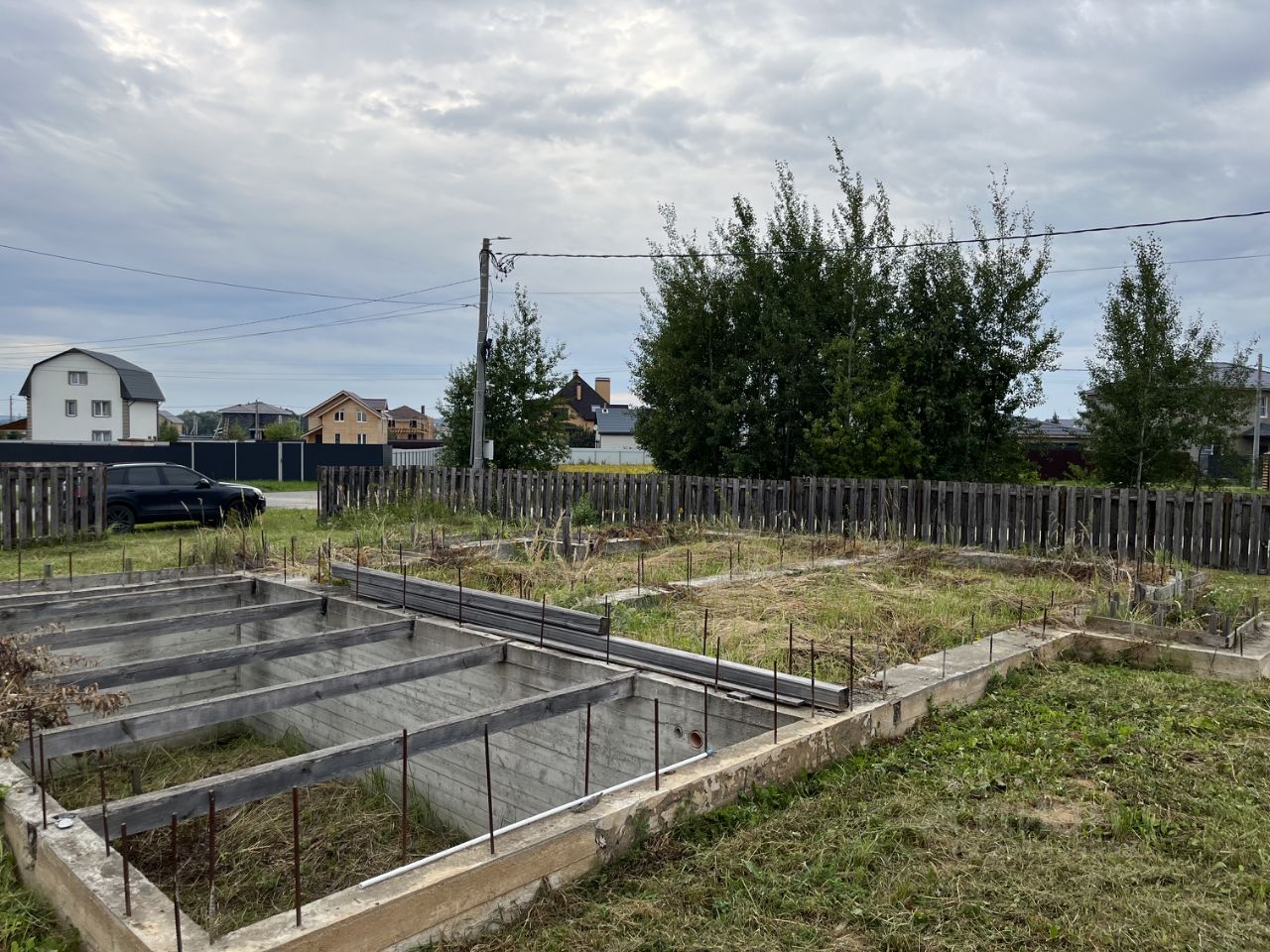 Рядом расположен фундамент глубиной 1,8 метра размером 13,5x10,5 метров с индивидуальным проектом. На участке бытовка и туалет, высажены плодовые деревья.