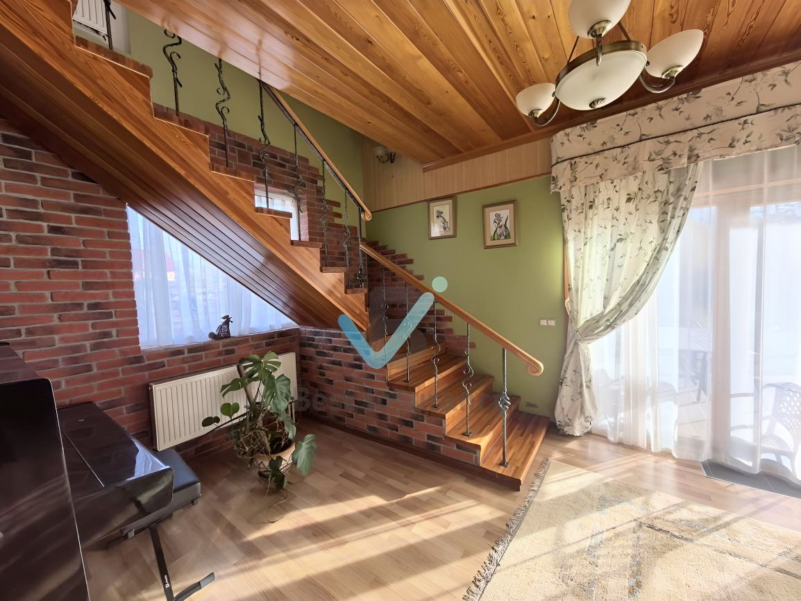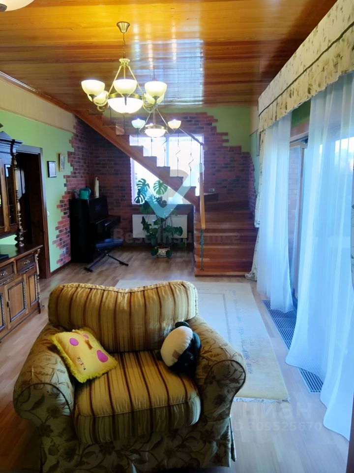 Дом: 230,4 кв.м. светлый, теплый, уютный. Фундамент плита. Высота потолков 3 м. Двухкамерные деревянные стеклопакеты. Лестница бетонная. Остается почти вся мебель