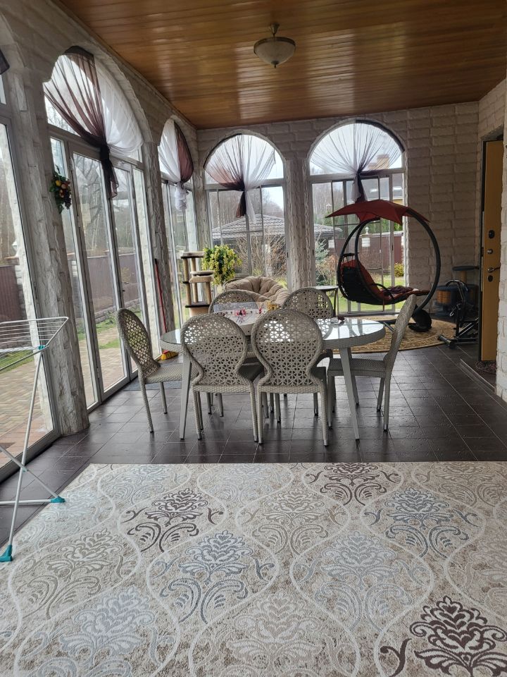 250 м основной дом, 50 м терраса неотапливаемая, застекленная, 80 м пристройка в виде двухуровневой квартиры с сауной. Котельная, подвал, барбекю. Отделка - лиственница и керамогранит. Дом из полнотелого блока толщиной 40 см, который используется в монолитном строительстве. Потолки 3,50.