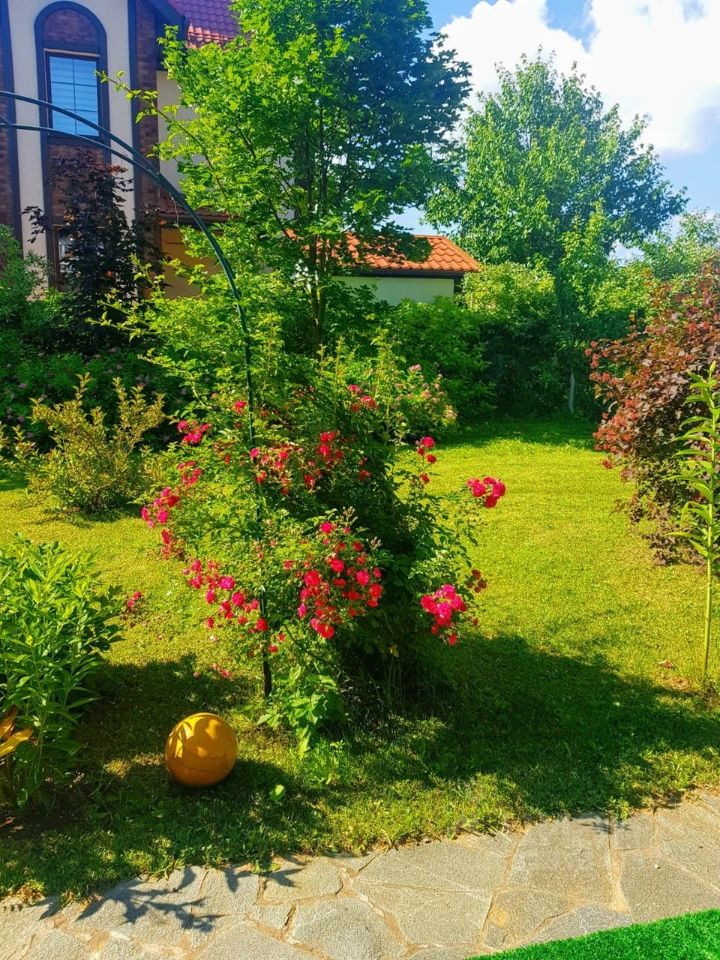 ОКП Европа-2. Огороженный и охраняемый поселок. Прекрасный дом в современном стиле.1 эт: Кухня - столовая, гостиная с выходом на просторную террасу, кабинет (или спальня), с/у, кладовая, котельная, прихожая, гардеробная. 2 эт: Основная спальня с с/у, гардеробной и балконом, 2 спальни с с/у. Полностью укомплектован всей необходимой мебелью и техникой. Красивый ухоженный участок, имеется навес для автомобилей. Коммунальные платежи оплачиваются отдельно.