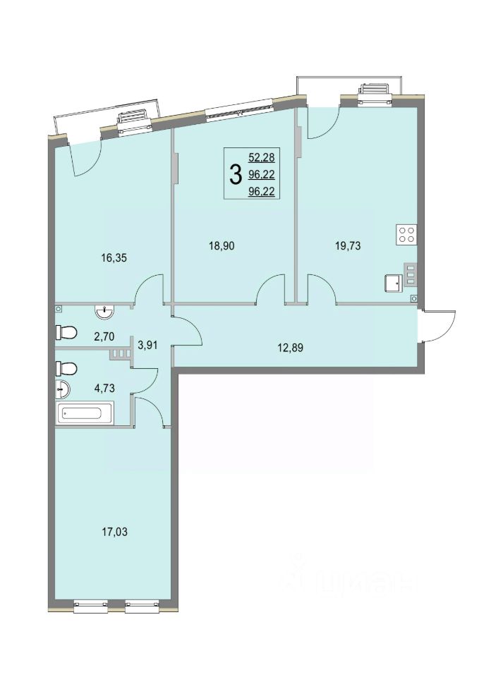 Общая площадь96,1 м2
