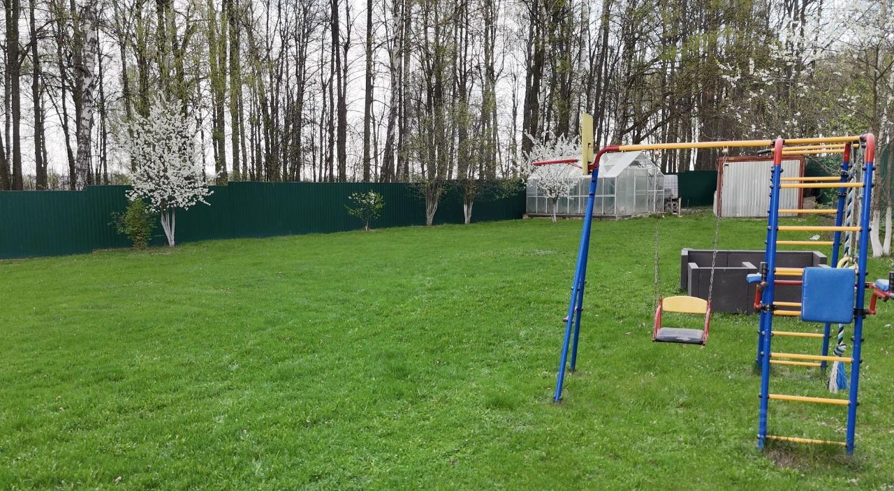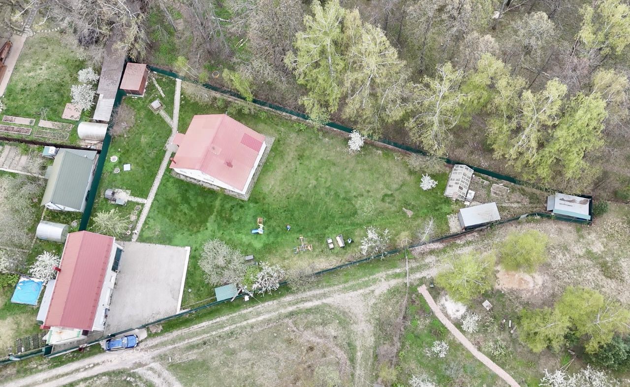 Участок 19 соток с плодовыми деревьями: груши, яблони, слива, малина, смородина. Выложены дорожки, зона барбекю и место для парковки. Предусмотрен вольер для собак с утепленной будкой, сарай для хранения инвентаря, теплица, детская площадка, калитка для выхода в лес.