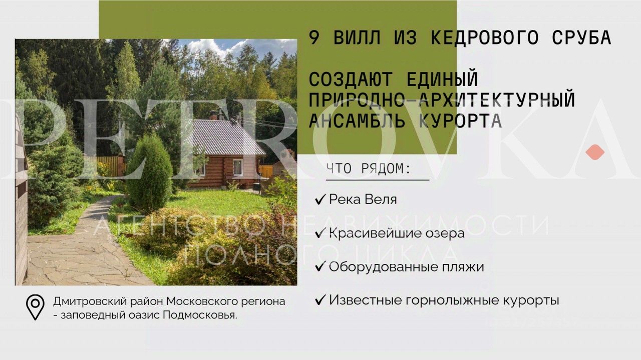 Продажа уютной базы отдыха в заповедном оазисе Подмосковья. Отель ''Кикино на Веле'' - это 9 домов из кедрового сруба, великолепная природа и инфраструктура для незабываемого отдыха на природе.