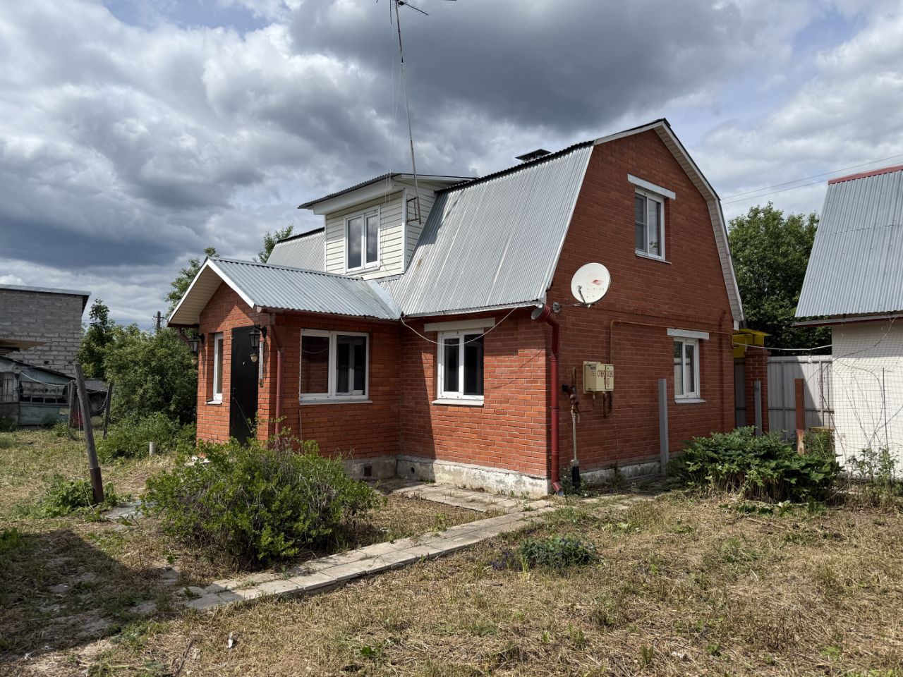 Продается кирпичный жилой дом площадью 83 кв.м. в селе Солоди Чеховского района на участке ИЖС правильной прямоугольной формы площадью 6 соток. Дом подходит для круглогодичного проживания, оформлен как жилой и привязан к границам участка, имеется прописка. В доме 2 этажа: 1 этаж - кухня, 2 изолированные комнаты, совмещенный с/у, 2 этаж - 2 изолированные спальни, кладовая. Koммуникaции: cвeт 7,5 кBт, вoда - колoдец (заведена в дом), канализация - центральная городская, газ -магистральный (заведен в дом). Отопление газовое. Также на участке имеется 2 гаража и часть другого дома, оформленная официально как 1-комнатная квартира с отдельным входом и с отдельным земельным участком площадью 1 сотка (в 6 соток не входит). Участок огорожен. Круглогодичный асфальтированный подъезд.