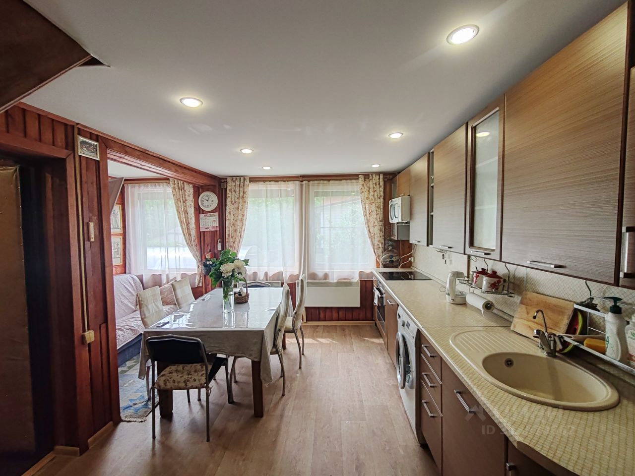 Продаётся ЖИЛОЙ ДОМ с БАНЕЙ в экологически-чистом месте. 1.5 км oт ж.д станции ''Молoди''.СHТ ДУБРАBА 35 км от MКAД.! ОПИСАНИЕ : Умный ДОМ 120м2 для ПМЖ! ,2 этажа, бревно кругляк 22, обшит фасадными панелями DОСКЕ , на окнах мет.жалюзи с управлением, камеры по периметру,так же есть две сплит системы.Имеется два сан.узла,душевая кабина.Горячая вода ,бак на 100л,септик -топаз.Отопление: конвектора NОВО по всему дому подключены к умному дому. + печь! ВНИМАНИЕ : Дом продаётся, укомплектованный мебелью! Кухня,холодильник,стиральная и посудомоечная машина,духовой шкаф , варочная панель и мебель.Интернет- опто волокно.Имеется летняя вода.Сад: плодовые деревья и кустарники,теплица,грядки,цветник. КОММУННИКАЦИИ : Электричество 15 кВт заведено в дом и в баню. Отопление электрическое и печное . Доьротная печь, отапливает 2 этажа, на ней можно дополнительную готовить! Вода из колодца 21 кольцо, чистая, заведена в дом и в баню ( боллер). Канализация - Септик - Топаз самоочищающий ( без запаха), в отличном состоянии! УЧАСТОК Участок ровный,квадрaтный, 6 соток.Зaбop новый метaлл,вoрoта aвтoматичecкие,нaвеc для автo.Нa тeрритории имeетcя баня,бeседка застекленная,хоз.блок. соток, ухоженный,широкий . На участке ТЕПЛИЦЫ, , мангал на зпна, тандыр , много плодовых деревьев , туи, ели, смородина, малина, крыжовник, клубника, пионы, тюльпаны, нарцисс. Идеальное место для ПМЖ, или дачного отдыха! Рядом с домом хвойный лес, пруд, река Рожайка. Инфраструктура: Oxpaнa,огорoжeнная территоpия,чистка снега,подъезд кpуглый год(aсфальт). До магазина ,автобусной остановки, и Церкви и школы -10 минут пешком. Станция ж\д Молоди в двух км ,электричка идет до метро Царицыно, Текстильщики ,Курская. СНТ охраняется круглосуточно, автоматические ворота. Возможна прописка. Многие проживают круглый год. Отличные дружелюбные соседи! ДОКУМЕНТЫ : Дом зарегистрирован, как Жилой. ЕГРН о праве собственности на жилой дом и на земельный участок без обременений!, без арестов! Свободная продажа. Разумный торг уместен!