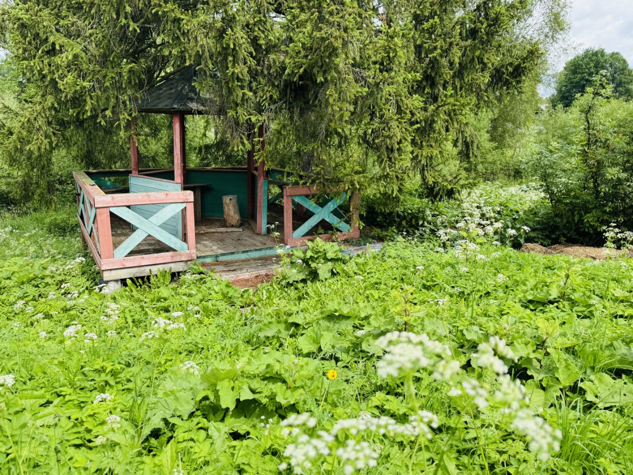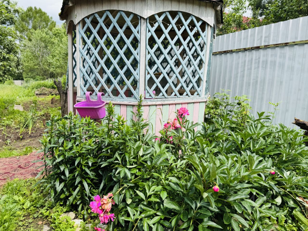 на участке есть беседка, уличный туалет, грядки.