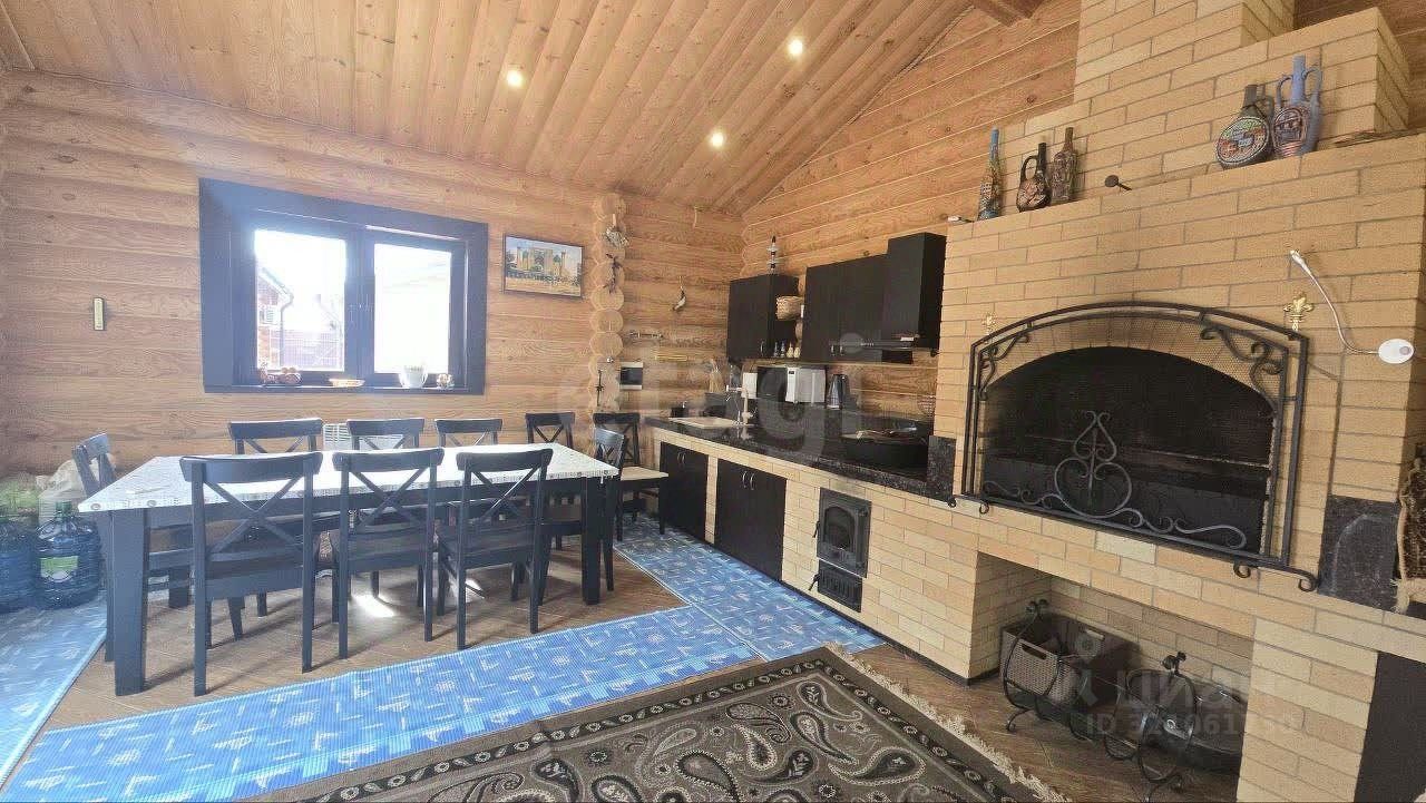 Двухэтажный дом с сауной и комплексом построек на благоустроенной территории площадью 10 соток в СНТ ''Рождествено'' (земли населённых пунктов под ИЖС)! !Дом и все постройки из оцилиндрованного бревна! Ключевым объектом является двухэтажный банный комплекс площадью 66,5 кв. м, в котором размещены сауна, бильярдная, зона отдыха и мангальная зона. Для автомобиля предусмотрен на 1 машину площадью 29,3 кв. м со стеллажами и освещением, также на территории есть парковочные места для 2 машин и более. Хозяйственный блок с мангальной зоной площадью 25,3кв.м, подходит для приёма гостей (летняя кухня). По всей территории тротуарная плитка, посажены голубые ели.