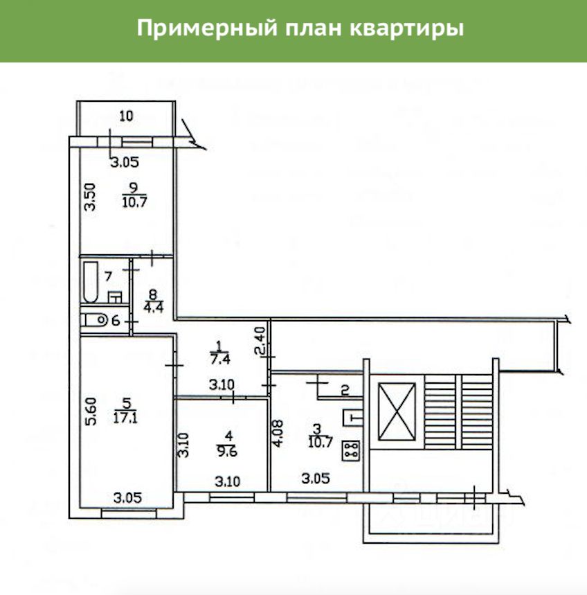 ПОДРОБНЕЕ о квартире: * Продается 3-комнатная квартира, Московская область, г. Чехов, ул. Чехова, 4А. 50 км от МКАД. * Площадь: общая 65.4 м² (с учетом лоджии), жилая ~ 37.4 (9.6+17.1+10.7) м², функциональная кухня ~ 10.7 м².