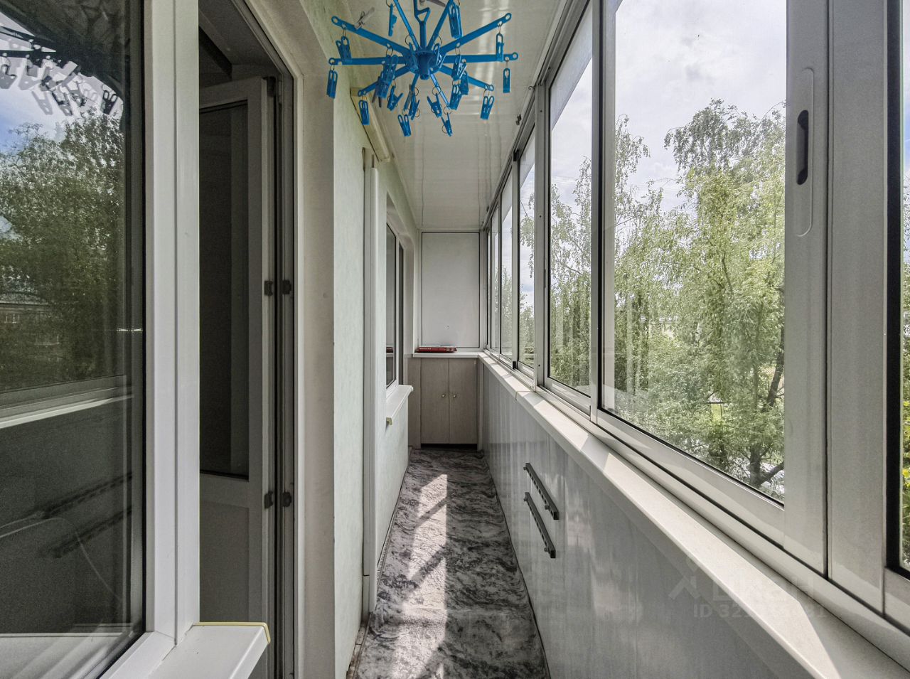 Большая лоджия с выходами из кухни и гостиной. Квартира с отделкой. Чистый подъезд, уютный зелёный двор с детской и спортивной площадками.