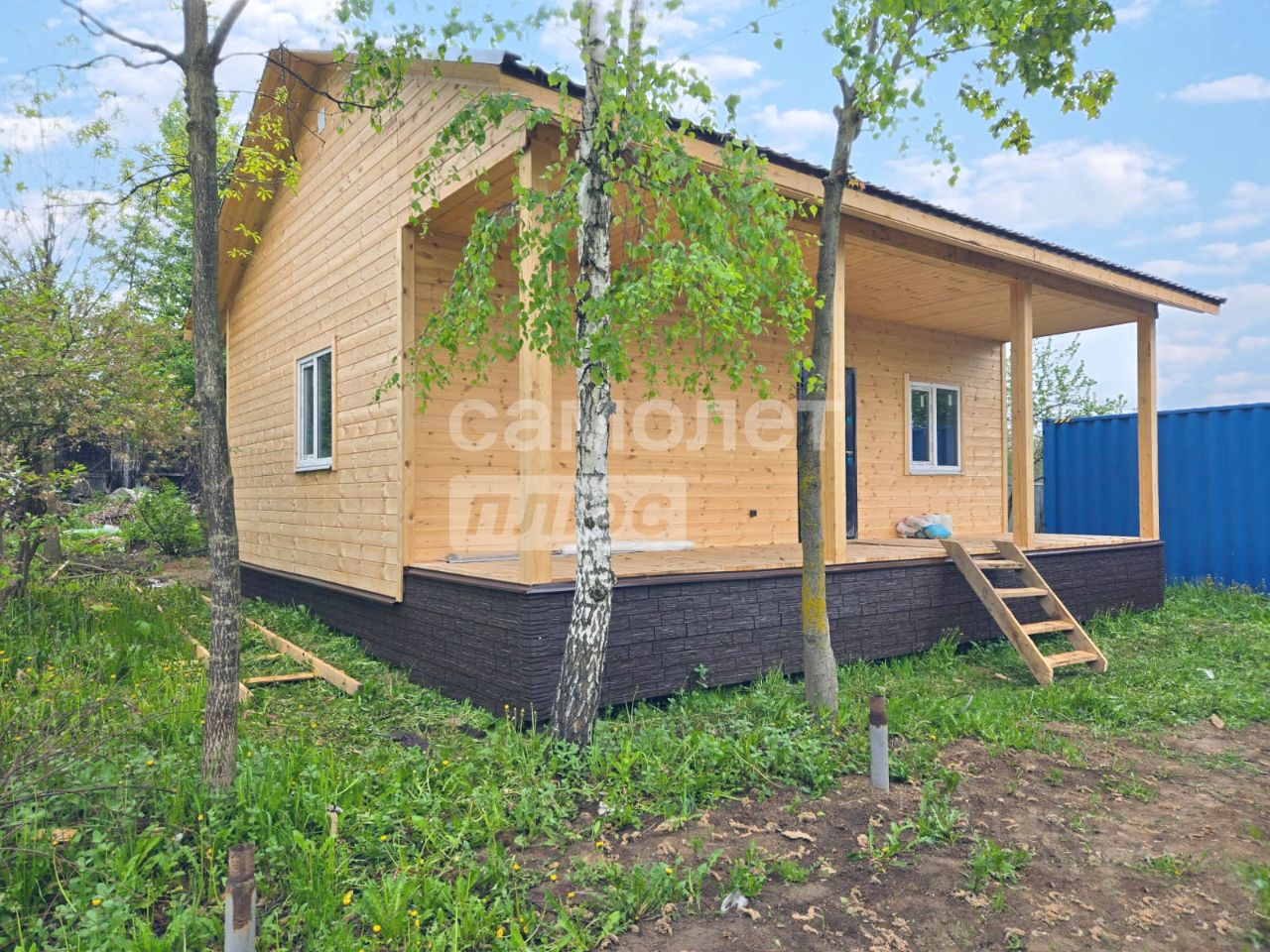 Участок, площадью 6.3 сотки, огорожен забором, есть парковочное место под навесом для автомобиля.