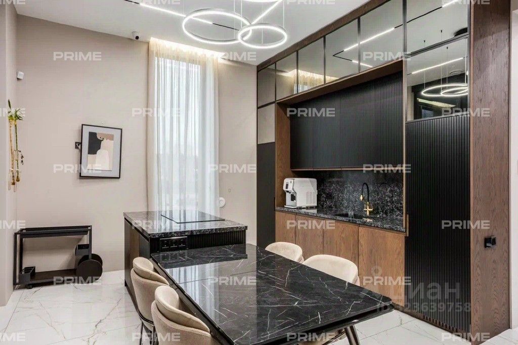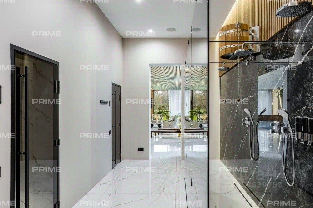 В ритме природы и архитектурной гармонии - резиденция в коттеджном посёлке ''Зеленково-2'', всего в 28 км от МКАД по Новорижскому шоссе. Это домовладение площадью 937 кв. м расположено на участке 100 соток и представляет собой готовое решение: меблированный дом ''под ключ'' с эксклюзивной дизайнерской отделкой. Объект принадлежит единственному собственнику и свободен от каких-либо обременений, что делает покупку максимально прозрачной и надёжной. Пространство, где каждая деталь продумана, а стиль сочетается с комфортом и уединением. Первый этаж встречает просторным холлом с большой гардеробной и постирочной зоной. Здесь расположены кухня, столовая с выходом на открытую веранду с дровяным камином-барбекю, гостиная с паровым камином, кабинет, гостевой санузел, котельная и гостевая спальня. Особое внимание заслуживает спа-зона площадью 200 кв. м: три душевые с обливным ведром, хаммам с эффектом ''звёздного неба'', сауна с панорамным остеклением в бассейн, плавательный бассейн 105 м и зона отдыха с мягкой мебелью, шезлонгами и ТВ - всё это с выходом на террасу. На втором этаже вас встречает просторный холл со вторым светом в зоне лестницы. Хозяйский блок площадью 100 кв. м включает большую спальню с выходом на террасу, ванную комнату с панорамным видом на участок, гардеробную на 14 шкафов и выход на балкон. Также предусмотрены два детских блока - каждая спальня с собственной гардеробной, санузлом и выходом на террасу. Дополнительно - гостевая спальня. Просторный участок с лёгким уклоном разделён на три зоны. Въездная группа оформлена ландшафтным дизайном, создающим ощущение камерности и приватности. Придомовая территория с террасой, открытым очагом и декоративным водоёмом с золотыми рыбками станет любимым местом для вечернего отдыха. Лужайка с взрослыми берёзами на юго-западной стороне придаёт участку естественную гармонию. Свой выход к реке Истра делает это место по-настоящему особенным - утренний кофе на террасе, неспешные прогулки вдоль берега, рыбалка или просто созерцание природы наполняют каждый день атмосферой уюта и вдохновения.