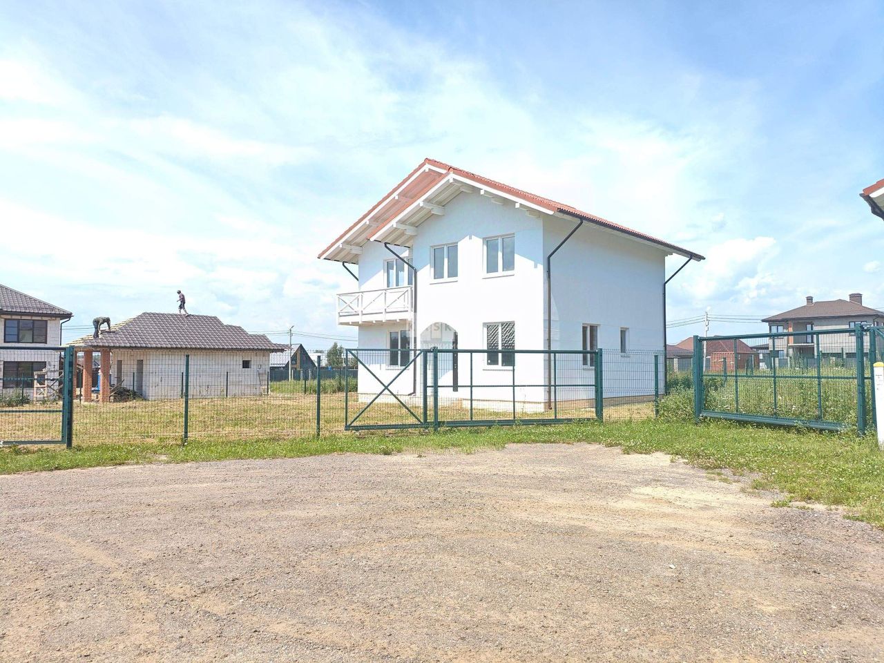 Дом построен на участке 10соток из газосиликатного блока (40см) , кровля - долговечная цементно-песчаная черепица Brass.