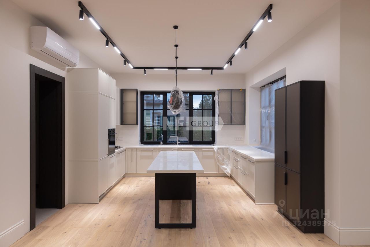 Представляем новый элегантный дом с ремонтом без мебели в коттеджном поселке ''Европа-1'' с изысканной отделкой и премиальным оснащением. Здание построено из благородного бельгийского кирпича, установлены высококачественные окна Reynaulds. В доме предусмотрен просторный зал с высокими потолками 6,4 метра, спальни с потолками 3,2 метра. Интерьер дополнен роскошным немецким камином и кухней от Giulia Novars. Бытовая техника представлена брендами Asko и Liebherr. Для персонала предусмотрена отдельная квартира со спальней и собственным входом.
