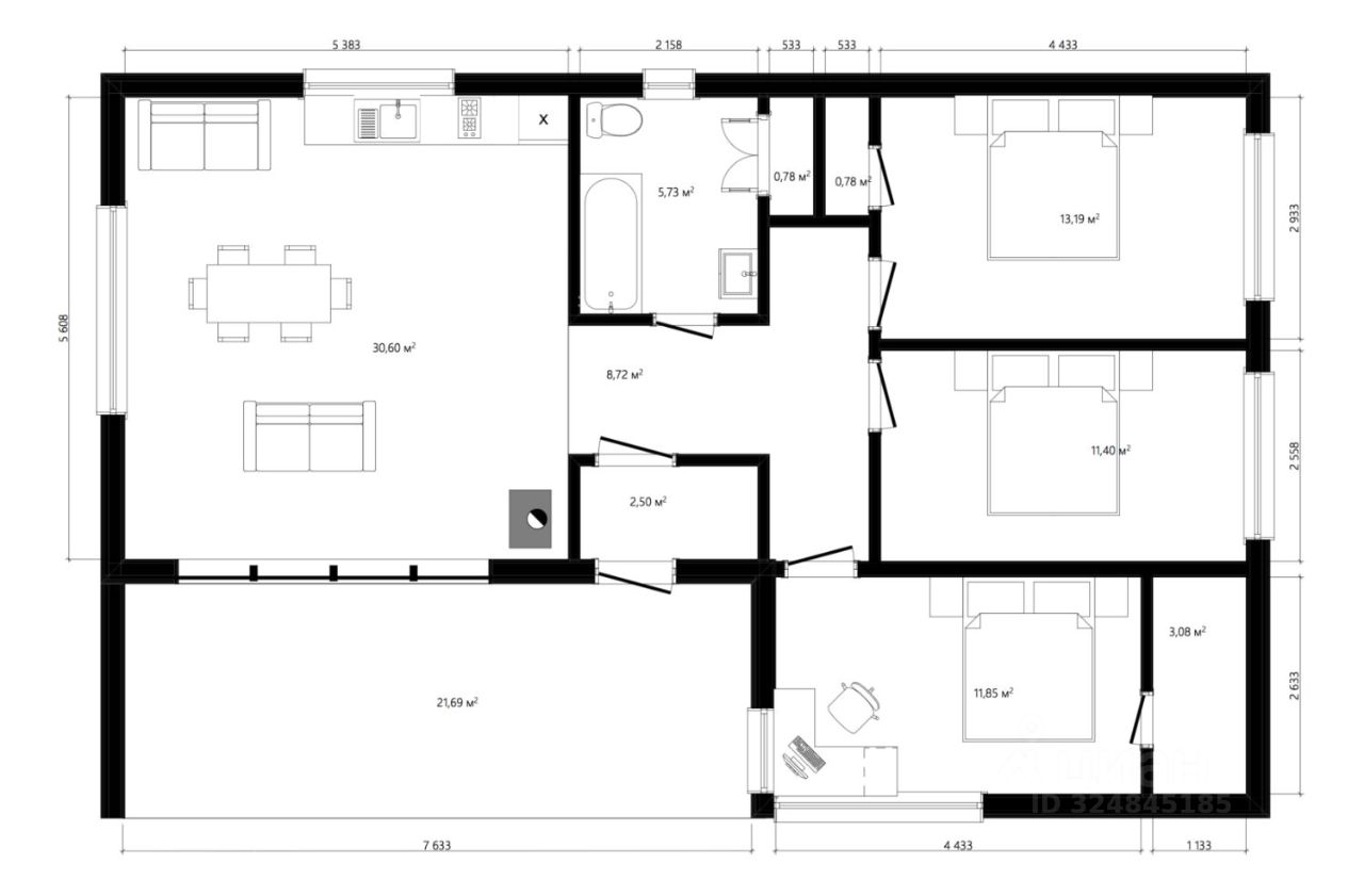 Планировка: - 3 спальни - Просторная и светлая кухня-гостиная с выходом на террасу — это настоящий дом с террасой, где приятно проводить время всей семьей.