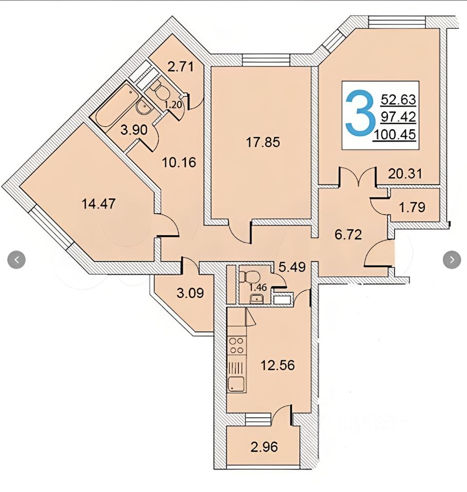 Общая площадь 97,6 кв. М. — это пространство, где вы сможете воплотить все свои идеи. Квартира отличается удачной и функциональной планировкой, которая создает ощущение легкости и простора.