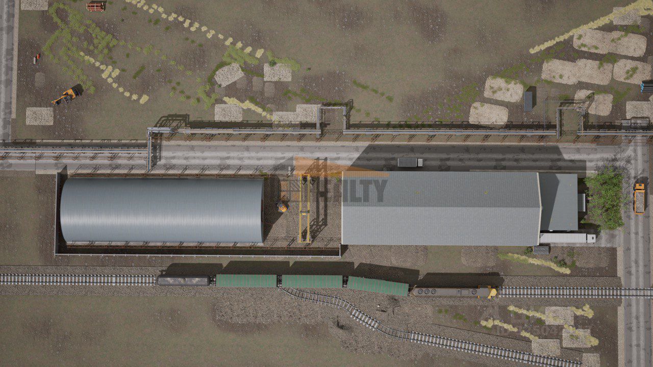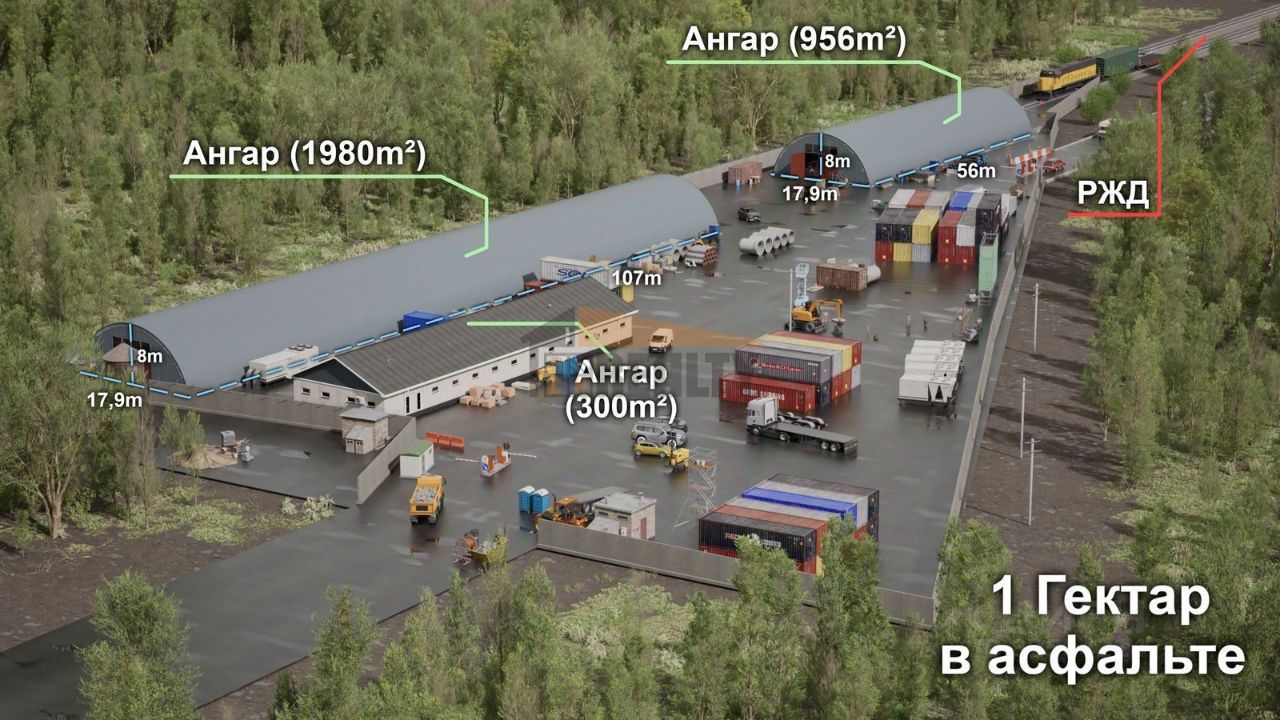 На территорию подведена жд ветка.