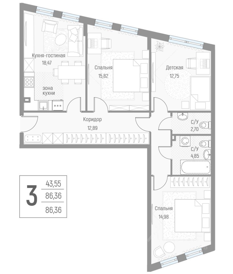 Общая площадь86,5 м2