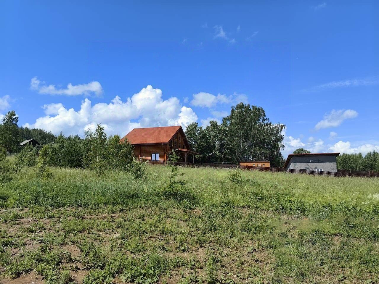 Рядом густой лес, по границе озеро прекрасное видовое место, для загородного отдыха.