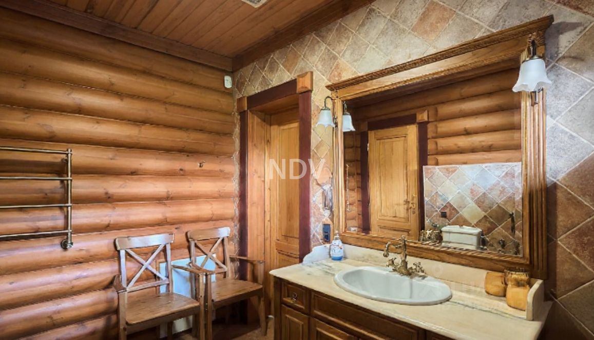Интерьер дома продуман до мелочей: 1 этаж: — Просторная гостиная со столовой и двумя выходами на террасу — Финская кухня с современной техникой — Настоящий камин из натурального камня с дровяной печью — Гостевая спальня, полноценная ванная комната и оборудованная сауна 2 этаж: — 4 светлые спальни — Современная ванная комната