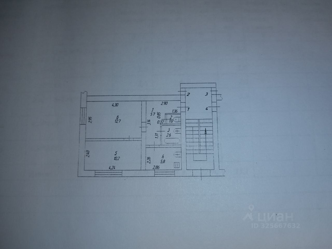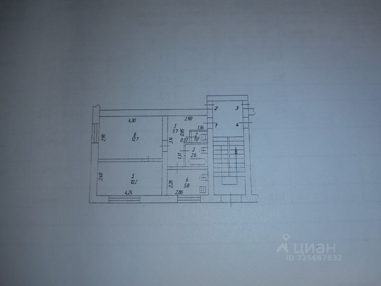 Общая площадь: 38 кв.м Кухня: 5,8 кв.м Комнаты: 10,2 кв.м и 12,7 кв.м