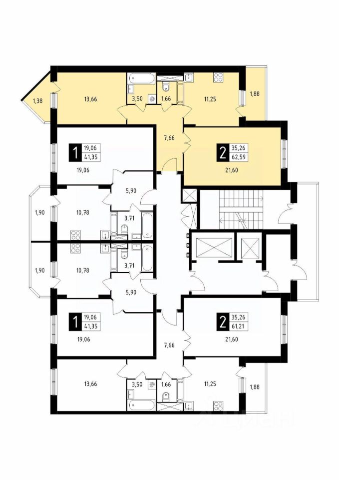 Продаётся 2-комнатная квартира в сданном доме (Корпус 41), срок сдачи: 4-кв. 2025, общей площадью 62.59 кв.м., на 16 этаже.