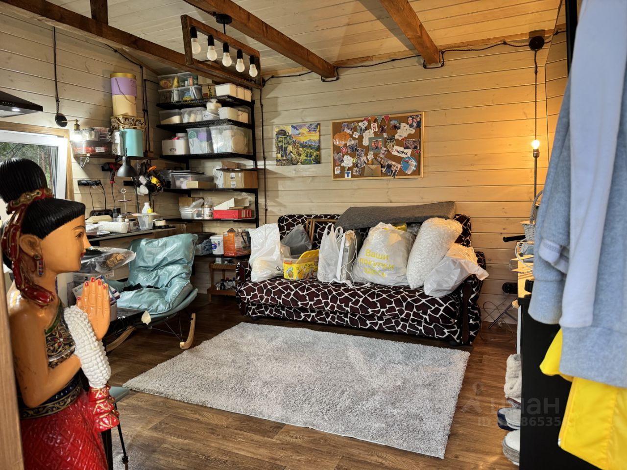 Мастерская: каркасный дом 6*3,5, основное помещение, кладовка для инструментов и дровник. Подведено электричество. При желании можно переделать в гостевой дом.