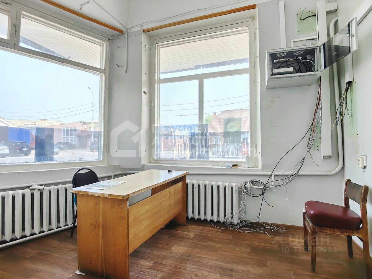 Помещение состоит из длинного холла, двух кабинетов с витражным остеклением и двух санузлов, один из которых можно переоборудовать под свой бизнес. Отдельный вход с улицы. Соседнюю часть здания занимает магазин хозтоваров. В помещении раньше располагалась касса автостанции.