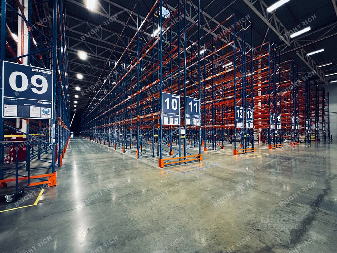 Характеристики: - Класс: A, - Ворота: Доки, - Тип склада: Сухой склад, - Высота потолков: 12 м, - Нагрузка на пол: 8 т/ кв.м, - Система пожаротушения: Спринклерная, - Тип пола: Бетонный пол, С антипылевым покрытием, - Уровень пола: 1.2 м, - Шаг колонн: 12x24 м.